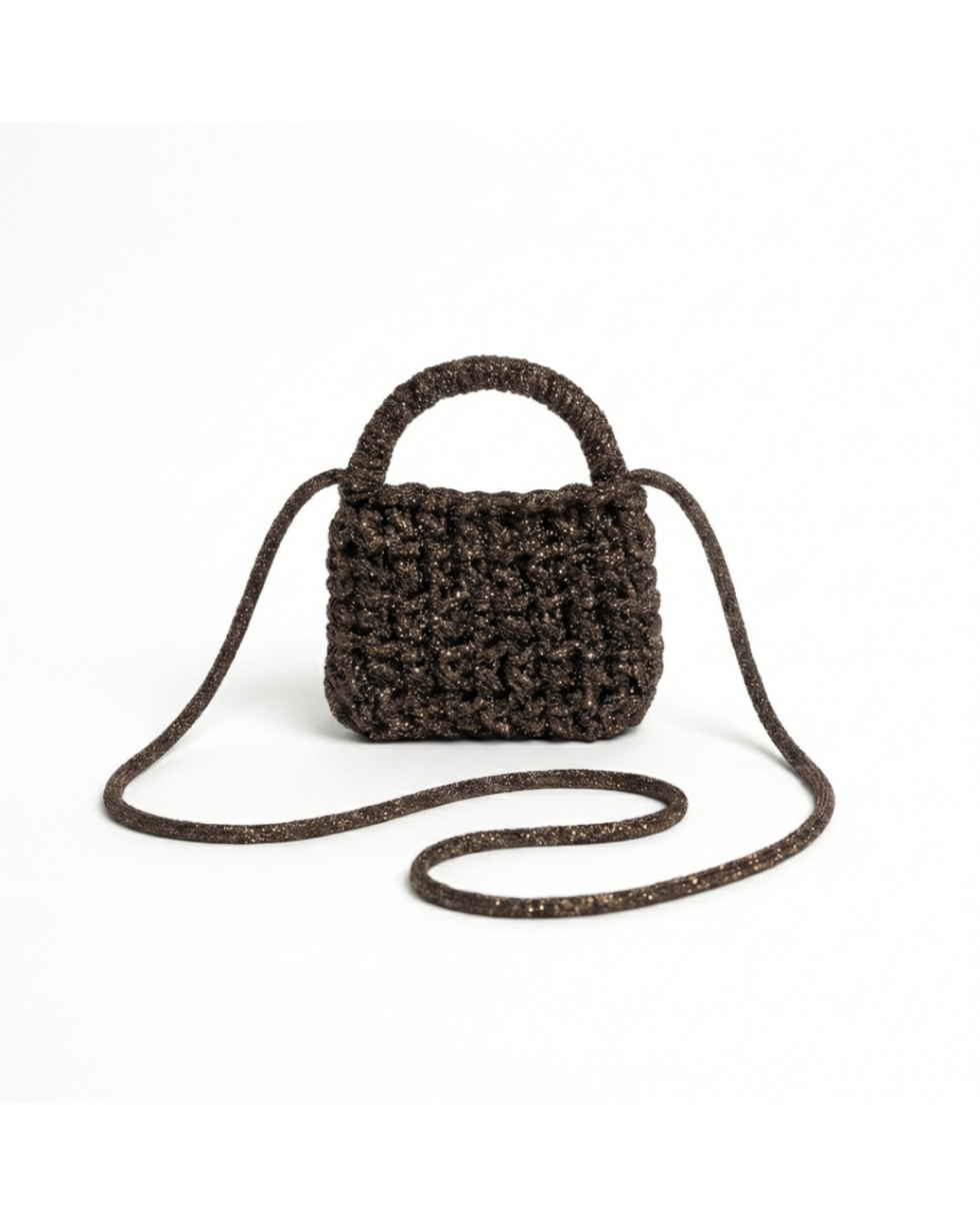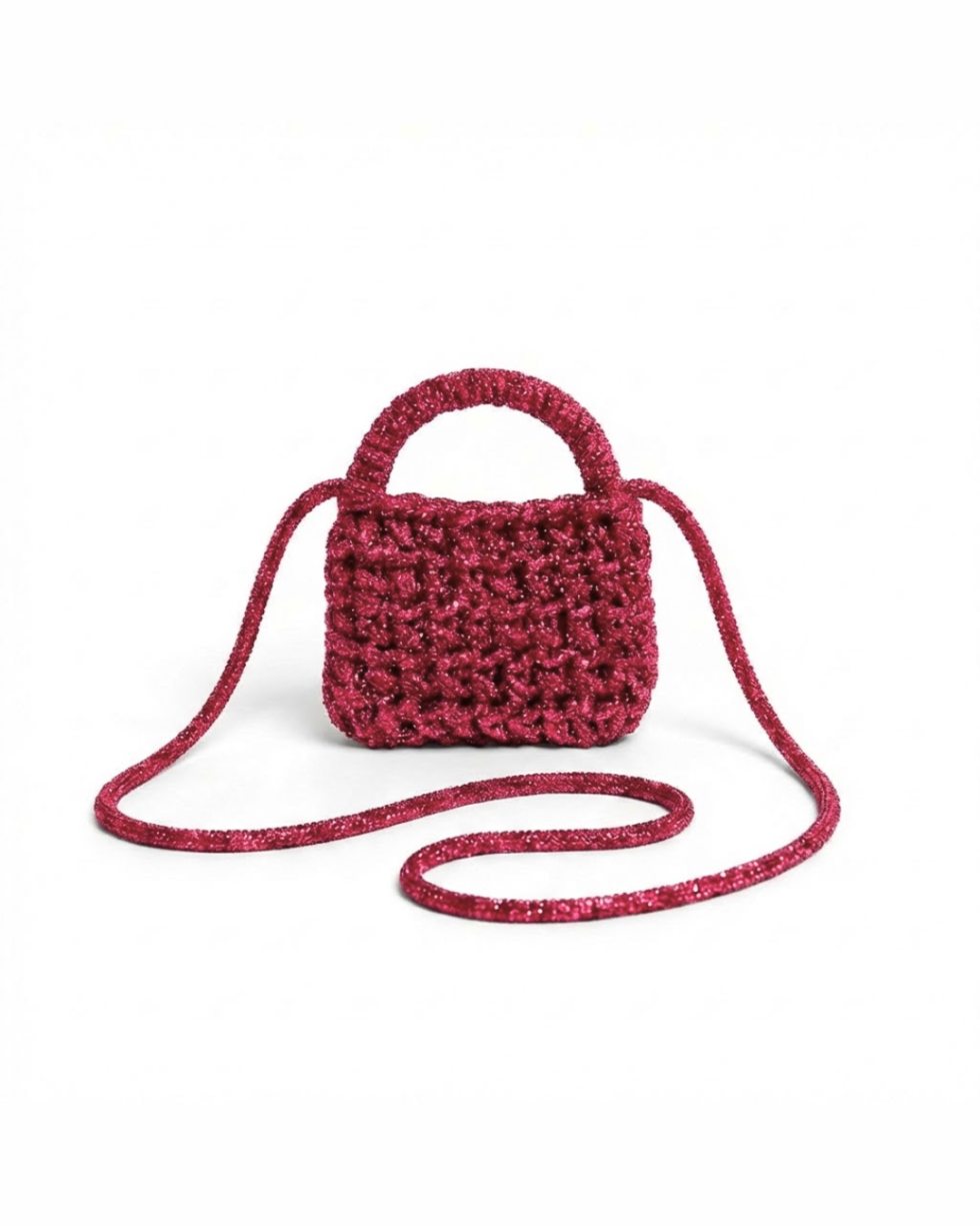Ogni borsa è realizzata artigianalmente a mano: leggere variazioni nelle dimensioni e nei dettagli rendono ogni creazione unica e irripetibile. Il materiale utilizzato è filo di resina e cristalli, selezionato per garantire struttura, luminosità e un’estetica distintiva nel tempo.
